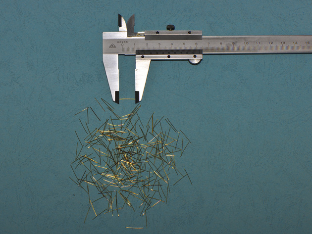 镀铜微丝纤维由于钢纤维的直径对纤维的其他性能参数的影响很大,比如分散度、比率等,当钢纤维的直径达到一定程度后,对混凝土的延性提高的作用就越不明显,高强度镀铜微丝纤维直径为0.18-0.25mm,长度12-15mm是细、短纤维,抗拉强度大于2880Mpa,能够在混凝土基体中乱向分布起到阻碍裂缝内部微裂缝的扩展和阻滞宏观裂缝的发生和发展的作用。