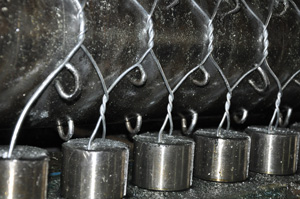 1、高热镀锌丝:高热镀锌丝镀锌量最低要求在200g/m2以上,镀锌保护层的厚度可根据客户的要求制作。优质高镀锌低碳钢丝是石笼网编织基本选材,网丝抗拉强度不少于380kg/m2,钢丝直径可以达到2.0-4.0mm。